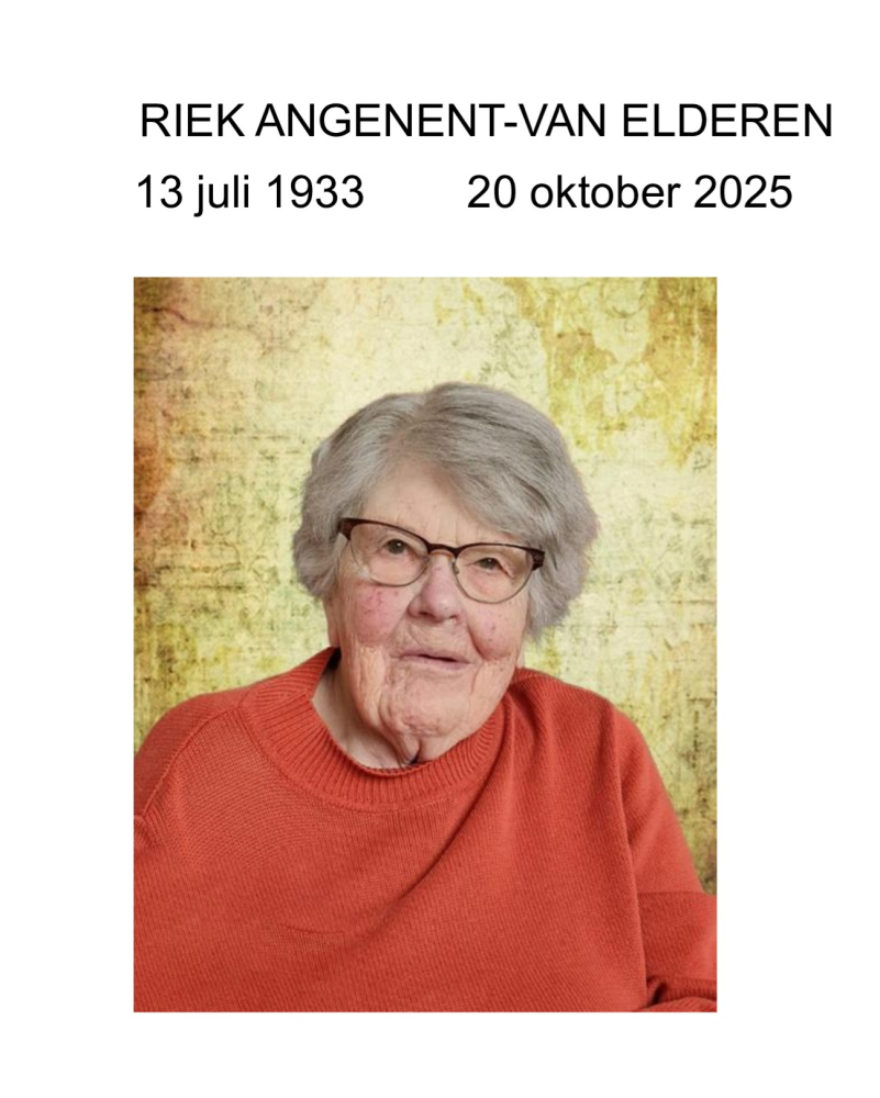 Dankdienst voor het leven van Riek Angenent-van Elderen